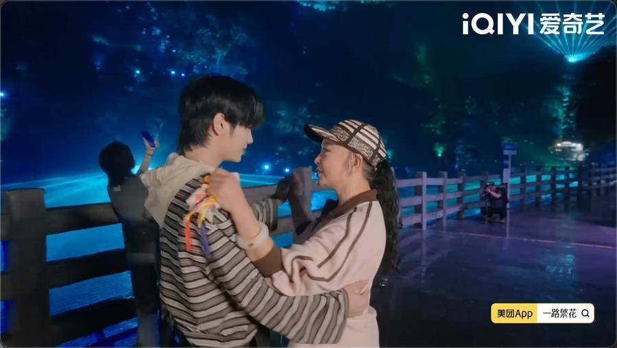 作为地道贵州人,宁静被姐弟们推选为新任领队,虽嘴上喊着“我不行”,却用行动交出满分答卷,反差萌拉满。秉持着让繁花团全员“爱上贵州”的心愿,宁静早在内蒙古就已经规划好了行程,细心安排行吃住玩,还用家乡话与当地司机沟通保障出行体验。在宁静的精心策划下,繁花团一行人在黄果树瀑布下尽享地道黔味美食。何赛飞、刘晓庆、邵子恒更是在夜游瀑布时跳起华尔兹,彻底卸下包袱,沉浸在贵州的热情与浪漫之中。